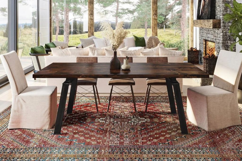 - Traditional or Vintage Rugs: If your dining area embraces a more traditional or vintage style, consider adding a rug with intricate patterns, such as Oriental, Persian, or traditional floral designs. These rugs can lend a sense of timeless elegance to the room.